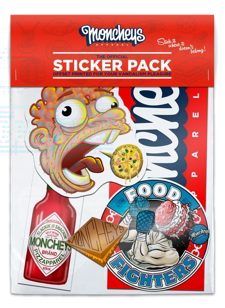 These 5 low-quality stickers were designed and printed in Germany. They get their extra sticky glue from frying fat and the sweat of two dozen heavily overweight kids.